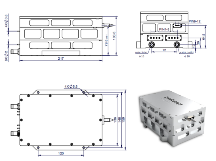 凯普林针对性开发的系列蓝光半导体激光器,在3D打印及增材制造应用领域表现突出。比如这款250W蓝光组件,采用复合材料组合式水冷散热设计,确保铜水冷通道模块具备优异散热性能;同时搭配轻量级铝合金框架,在保障机械强度的前提下,实现材料组合与工艺的最优匹配。